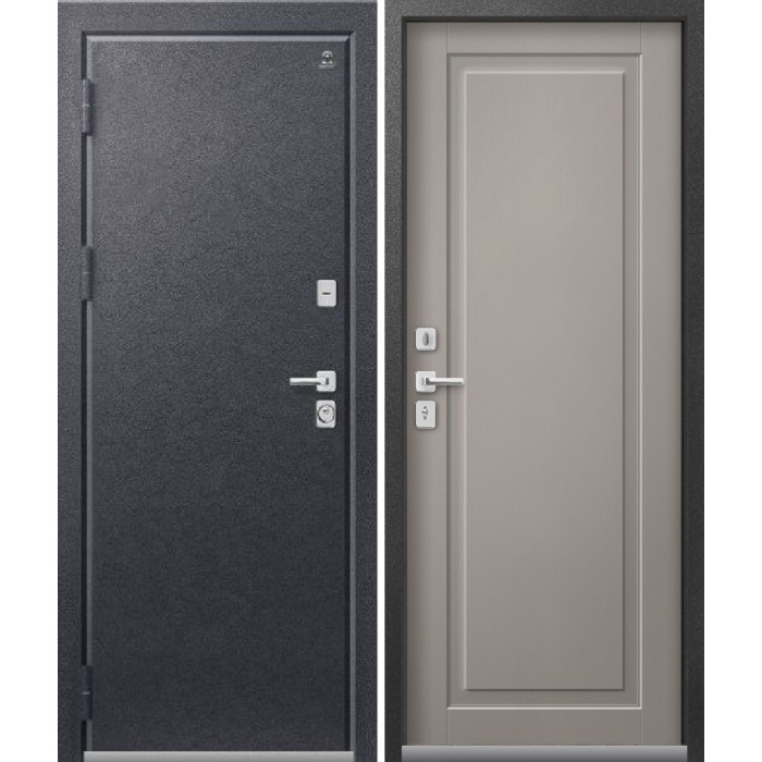 Декоративная накладка с автоматической шторкой, броненакладка на цилиндр, цилиндр** - ключ/вертушка, ночная задвижка, ручка раздельная, 3 петли, Нержавеющий порог Четырёхкамерный терморазрыв на полотне и коробе